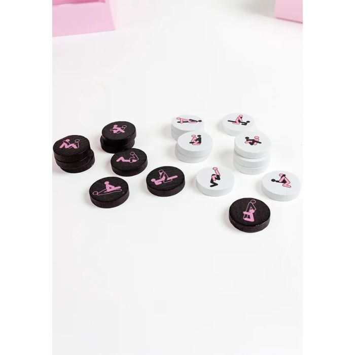 Dit spel daagt je uit om vier fiches van dezelfde kleur op een rij te leggen, terwijl je tegelijkertijd je partner probeert te blokkeren. Met 42 prachtig ontworpen fiches, waaronder 21 witte en 21 zwarte, is elke fiche versierd met een andere Kamasutra-positie die je fantasie prikkelt. Het afneembare spelbord maakt het opzetten en opbergen een fluitje van een cent, zodat je dit speelse spel altijd binnen handbereik hebt voor een gezellige avond vol competitie en creativiteit.