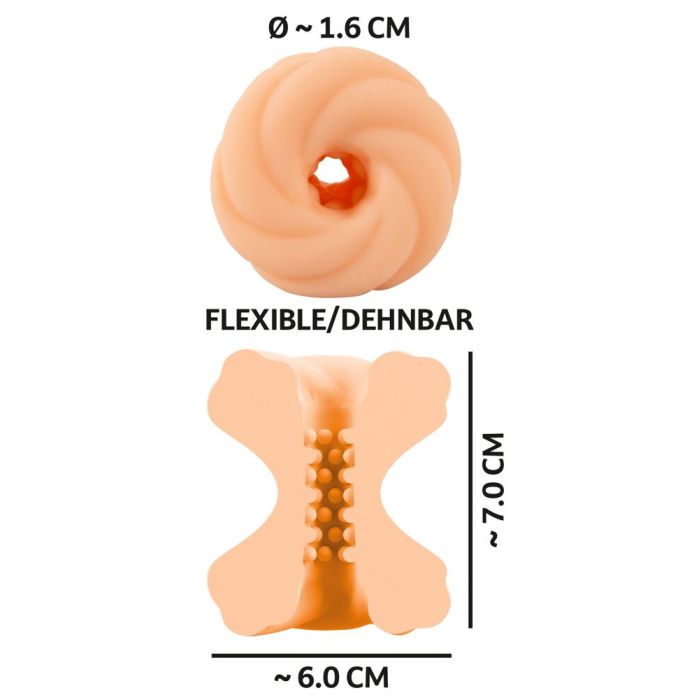 Met een lengte van 7 cm, een breedte van 6 cm en een binnen-Ø van 1,6 cm past de toy zich makkelijk aan verschillende maten aan. Het lichte gewicht van 99 g maakt hem prettig in de hand tijdens een handjob massage en zorgt voor optimale controle en comfort.