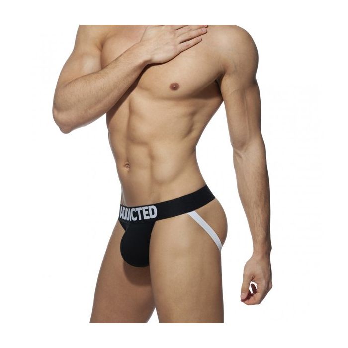 Dit klassieke jockstrap-model is speciaal ontworpen om zich aan te passen aan jouw lichaam, dankzij de elastische banden die een optimale pasvorm bieden. De zachte buidel zorgt voor de nodige ondersteuning, terwijl je tegelijkertijd de vrijheid van beweging behoudt. Of je nu een drukke dag voor de boeg hebt of gewoon lekker thuis wilt relaxen, deze jockstrap is de ideale keuze voor elke gelegenheid. De tailleband, versierd met het iconische Addicted-logo, voegt een vleugje flair toe aan je ondergoedcollectie.