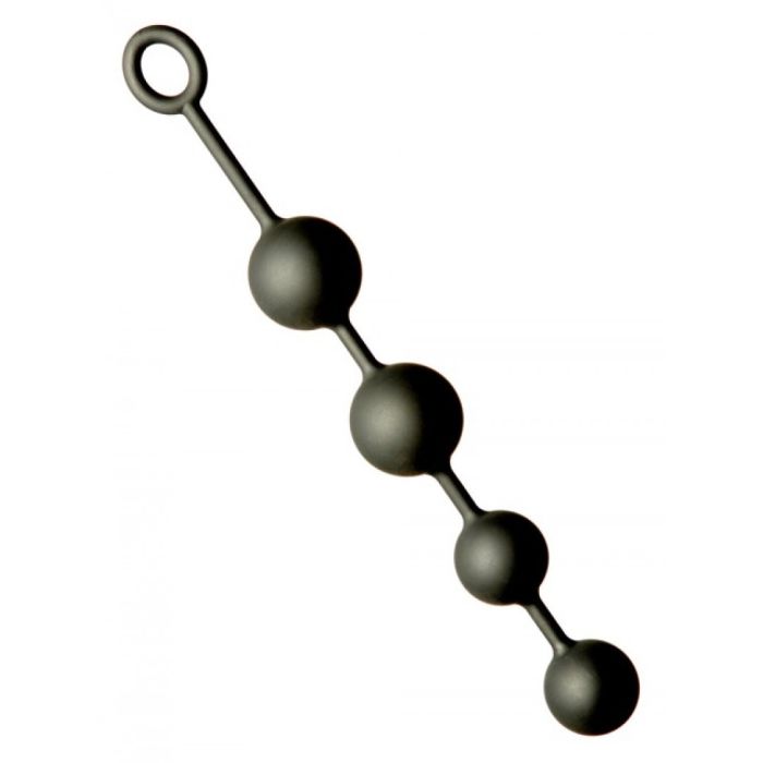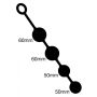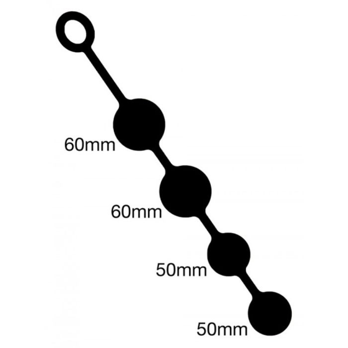 Vier zwarte anaal ballen aan elkaar verbonden door middel van een flexibel koord. Ze zijn als één geheel gegoten. Twee ballen hebben een diameter van 50 mm en twee ballen hebben een diameter van 40 mm. De totale lengte is 40 cm. Deze anaal ballen zijn speciaal ontworpen voor hungry holes. Ze zijn gemaakt van goedgekeurd siliconen materiaal en compatible met glijmiddelen op waterbasis.