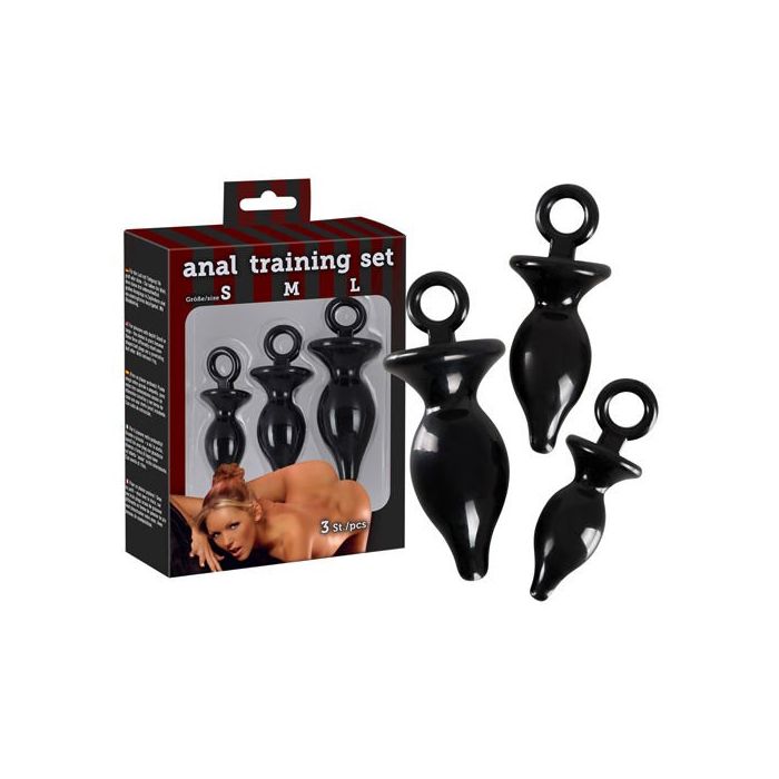 De set bevat 3 zwarte anaalpluggen in oplopende maten, zodat je langzaam kunt opbouwen.