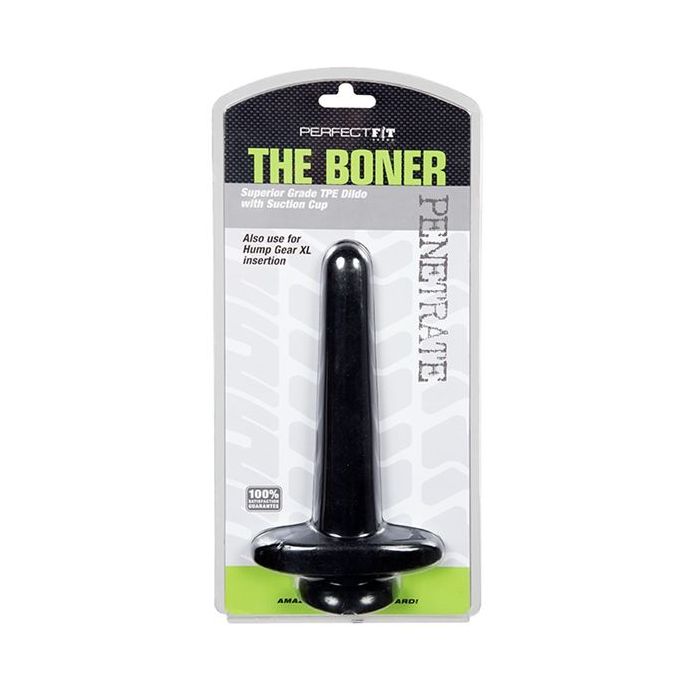 Maak kennis met een heerlijk grote anaalplug van Perfect Fit genaamd: The Boner. De plug is langwerpig en loopt breed af tot aan de stam. De anaalplug is gemaakt van PF Blend (een mix van silicone en TPR) en heeft een totale lengte van maar liefst 24.50 cm. Gebruik anaalplug The Boner met glijmiddel op waterbasis voor optimaal genot.