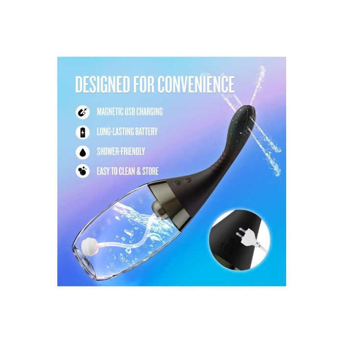 Gemaakt van lichaamsveilige, platina-uitgehard silicone met een zijdezachte afwerking, is de Aqua Jet niet alleen zacht voor je huid, maar ook ontworpen voor een grondige en comfortabele reiniging. Dankzij de IPX7 waterdichtheid kun je hem zonder zorgen gebruiken, en met de USB-oplaadbaarheid is hij altijd klaar voor gebruik. Het eenvoudig te demonteren ontwerp maakt snelle reiniging en onderhoud een fluitje van een cent, waardoor deze douche perfect is voor zowel beginners als ervaren gebruikers.
