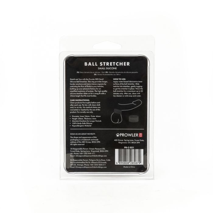 De Prowler RED Small Silicone Ball Stretcher is een hoogwaardig product dat speciaal is ontworpen om de mannelijke genitaliën te stimuleren en te vergroten. Met een binnendiameter van 3,4 cm en een buitendiameter van 4,6 cm, biedt deze ball stretcher een comfortabele pasvorm voor de gebruiker. Met een hoogte van 2 cm en een dikte van 6 mm is het ontwerp slank en discreet, waardoor het gemakkelijk onder kleding kan worden gedragen zonder op te vallen.