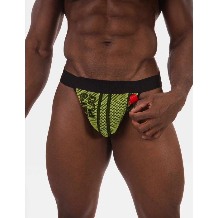 De Barcode Jock Let's Play in zwart/geel is de perfecte combinatie van comfort en stijl! Gemaakt van ademend mesh materiaal, biedt deze jockstrap niet alleen duurzaamheid, maar ook een speelse uitstraling met leuke borduursels en opvallende kleuren. De stevige tailleband en straps zorgen voor optimale ondersteuning, terwijl de handige zijzak met rits je spullen veilig houdt. Maak je sportoutfit compleet en laat je persoonlijkheid stralen met deze unieke jockstrap!