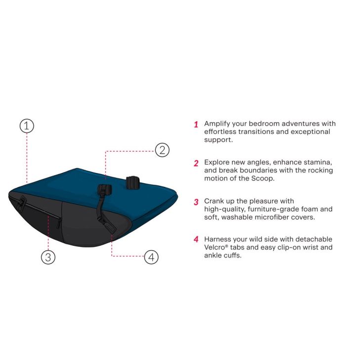 De Scoop Rocker kan eenvoudig worden omgedraaid om een helling te creëren, waardoor nieuwe posities en zachte bondage-spelvormen mogelijk zijn. Of je nu traditionele seksuele activiteiten wilt verkennen of je fantasieën wilt uitbreiden met bondage, dit kussen biedt een perfecte balans tussen comfort en ondersteuning.