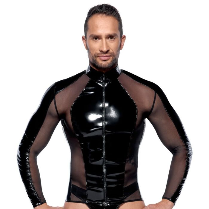Dit extravagante zwarte shirt met lange mouwen van Black Level is een echte eyecatcher! Het is gemaakt van glanzend lakleer en heeft spannende transparante mesh-inzetstukken, wat zorgt voor een opvallende en sexy uitstraling. De stijlvolle opstaande kraag en de doorlopende 2-wegritssluiting aan de voorkant geven het shirt een moderne en trendy look.