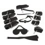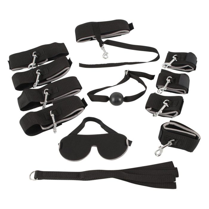 De afmetingen van de bondage set zijn als volgt; Het board, met 2 platen 60 x 60 cm (opengeklapt, 120 cm), 4 arm / hand boeien 39 cm lang, 6 cm breed, 4 been / enkel boeien, 56 cm lang, 6 cm breed, Verstelbare Halsband 5.00 cm hoog, verstelbare gag met diameter van 4.10 cm, zweep 38 cm lang en oogmasker met elastische band one size.