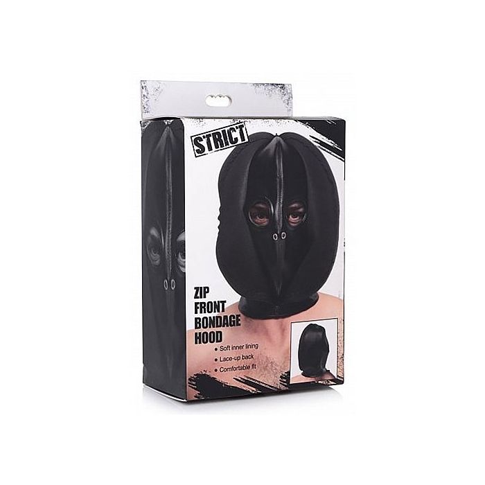 Met deze Bondage Masker Zip Front van XR Brands heb jij de controle over je sub. Hierdoor kun jij een kinky spelletje spelen. De masker heeft twee ooggaten en een paar ademhalingsgaten in de binnenkap, jij kiest om de voorkant dicht te ritsen om het zicht weg te nemen. Door de veters aan de achterkant kan de masker eenvoudig op maat worden gemaakt.