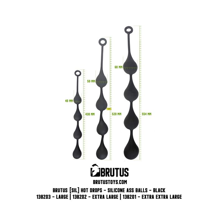 Bruut zijn deze Brutus Siliconen Anaal Ballen XL Zwart. Voor de ervaren anal player zijn deze siliconen anaal ballen een geweldige toevoeging op hun toys. De toy is voorzien van 4 ballen in de vorm van een druppel die jij makkelijk 1 voor 1 je anus in kan brengen. Aan het uiteinde zit een handige trekring waarmee jij de ballen makkelijk naar buiten kan trekken. Omdat jij klaar bent met spelen of om je orgasme heftiger te voelen. Ga voor een hete nacht met deze brute Brutus Siliconen Anaal Ballen XL - Zwart.