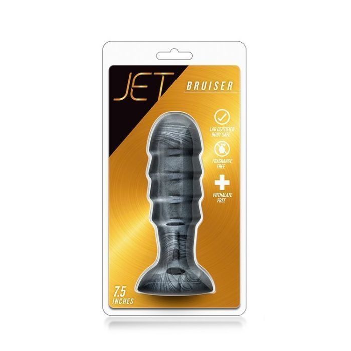Deze geribbelde buttplug Jet Bruiser zal jou van achteren eens flink nemen. Het stoere model is niet voor de beginners. De buttplug begint namelijk vrij breed zodat je kontje geen enkele kans krijgt om te wennen. Nadat jij de bolle punt door je kringspier hebt weten te duwen, volgen er een paar heerlijke ribbels die langs je kringspier zullen gaan. Laat de buttplug lekker zakken tot aan zijn vlakke basis en laat de Buttplug Jet Bruiser gerust een tijdje in je kontje zitten terwijl jij je lover verwend....