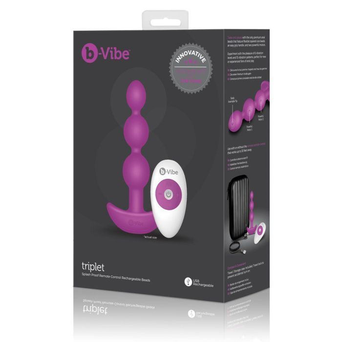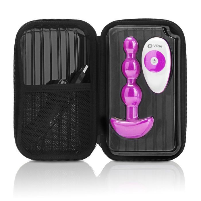 Verwen je kontje met deze speciale buttplug met dubbele motor inclusief draadloze afstandsbediening. De buttplug heeft 3 ballen die in maat oplopen. Zodoende is deze toy perfect voor de beginner die het graag eens anaal wil proberen. Natuurlijk is de buttplug ook geschikt voor ervaren anal players. De afstandsbediening heeft een bereik van maar liefst 9 meter zodat jij ook met je liefje buiten de deur plezier kan maken. Bij een volledige lading van 2 uur hebben jullie tot 1 uur plezier. De buttplug van B-vibe wordt geleverd in een luxe etui waarin jij de buttplug en zijn accessoires discreet kan opbergen. De afstandsbediening gebruikt een batterij die wordt meegeleverd.