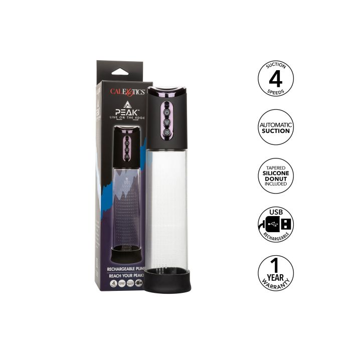 Ontdek de Peak Rechargeable penispomp van CalExotics, een must-have voor iedereen die zijn intieme momenten naar een hoger niveau wil tillen. Dit geavanceerde apparaat is niet alleen krachtig, maar ook super gebruiksvriendelijk. Met een indrukwekkende zuigkracht die je met één druk op de knop kunt activeren, is het perfect voor diegenen die op zoek zijn naar een revolutionaire manier om te genieten van een automatische penispomp. De vier instelbare snelheden bieden je de mogelijkheid om de intensiteit aan te passen aan jouw persoonlijke voorkeuren, van een zachte aanraking tot een krachtige stimulatie. Het ergonomische ontwerp maakt het mogelijk om de penispomp met één hand te bedienen, zodat je je andere hand kunt gebruiken voor extra plezier.