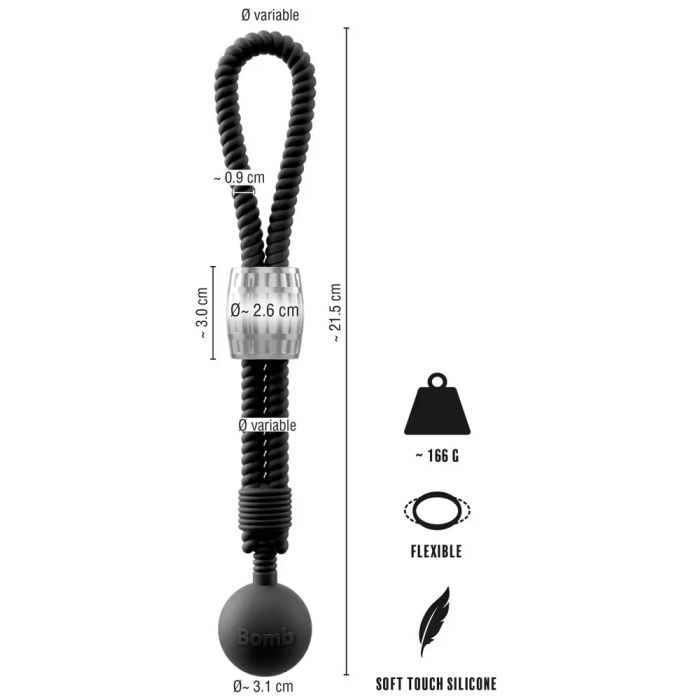 De Heavy Rope Cockstrap Met Bal van Rebel is een innovatief en robuust product dat speciaal is ontworpen voor de avontuurlijke gebruiker die op zoek is naar een unieke ervaring. Dit zwarte restrictielasso, vervaardigd uit hoogwaardig touw, biedt niet alleen een stevige grip, maar ook een esthetisch aantrekkelijk design. Het elegante metalen schuifgewicht en het extra balgewicht, met een totaalgewicht van 166 gram, zorgen voor een intensere stimulatie en een verbeterde erectie door het bevorderen van bloedophoping. De aanpasbare riem kan eenvoudig om de penis worden geplaatst, terwijl de rekbare siliconen lus ook rond de testikels kan worden gedragen voor een extra dimensie van genot. De ingenieuze combinatie van het dragen om zowel de penis als de testikels maakt dit product bijzonder veelzijdig, waarbij het balgewicht opwindend heen en weer zwaait bij elke beweging, wat bijdraagt aan een spannende en langdurige ervaring. Dit product is ideaal voor diegenen die hun seksuele avonturen willen verrijken en nieuwe hoogtes van genot willen verkennen.