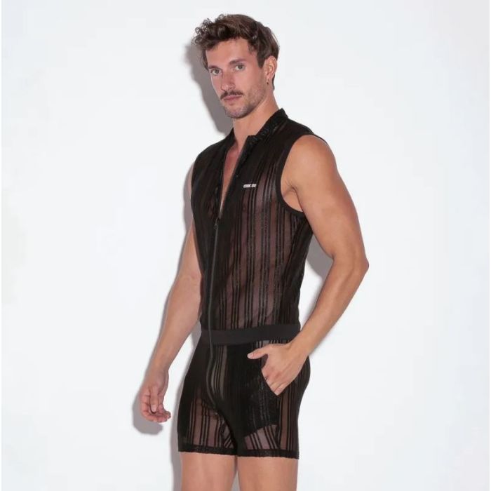 Code 22 Mesh Gestreepte Jumpsuit - Zwart