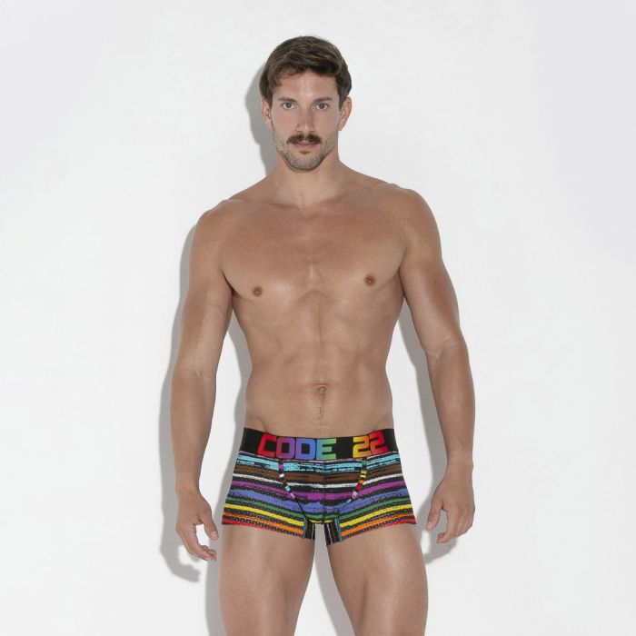 De superzachte elastische tailleband is een van de meest opvallende kenmerken van deze trunk. Deze band is niet alleen ontworpen voor een perfecte pasvorm, maar ook voor een luxueuze feel tegen de huid. Het iconische CODE 22-logo, dat met trots in de kleuren van de LGBTQ+ gemeenschap is uitgevoerd, voegt een extra dimensie toe aan het ontwerp. Dit maakt de trunk niet alleen een praktische keuze, maar ook een statement van inclusiviteit en trots. De combinatie van de zachte band en de sportieve uitstraling maakt deze trunk tot een must-have in elke garderobe.