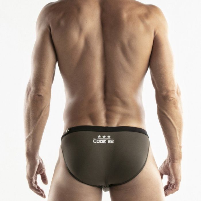 Verleid je partner en ga een zomer vol verleiding tegemoet, elke keer wanneer je de Code 22 Zwembroek Mini Brief - Khaki draagt. Deze zwembroek zorgt ervoor dat jij je nog meer zelfverzekerder en uitdagender zal voelen! Het laag uitgesneden minizwembroekje is gemaakt van een zachte en zeer fijne stof. Hierdoor heeft het broekje een hoog draagcomfort. Aan de achterkant beschikt het zwembroekje over het iconische militaire logo, namelijk CODE 22. Het gepatenteerde Power-Shape-systeem zorgt ervoor dat je mannelijke eigenschappen ten alle tijden goed worden versterkt.