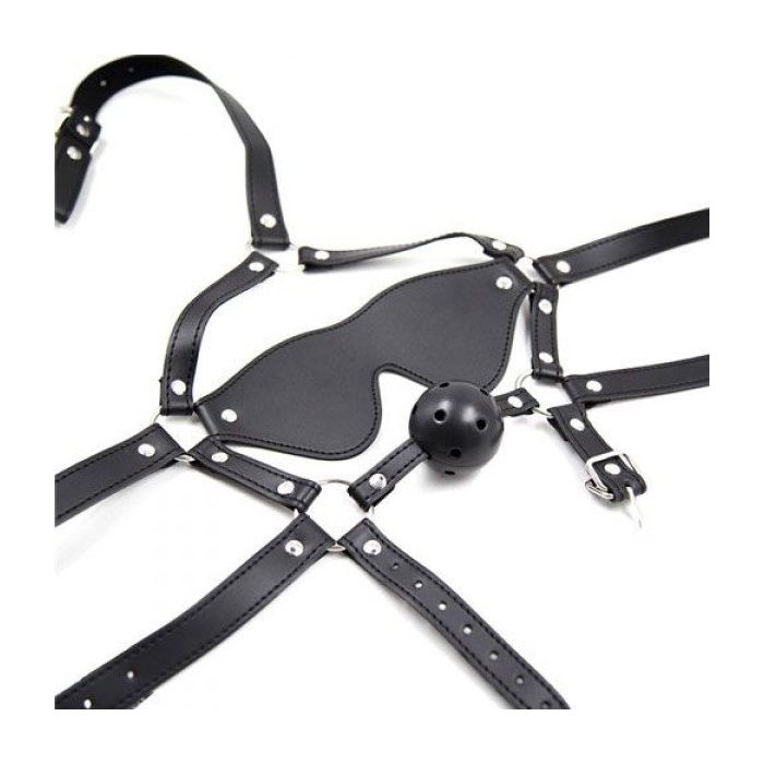 Compleet Hoofd Harnas met Ballgag en Blinddoek