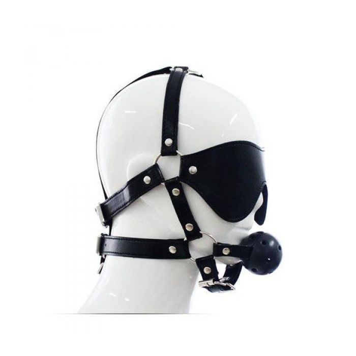 Met dit compleet hoofd harnas met ballgag en blinddoek laat jij je sub zien wie de baas in huis is. Het harnas is geheel verstelbaar met riempjes en zal door het super soepele materiaal fijn om het hoofd heen zitten. De ballgag heeft gaten zodat je sub nog gewoon kan ademen.Â