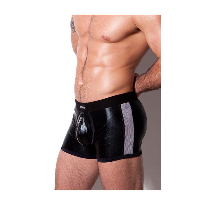 De Destructive Metal Mesh Zipper Short is een strakke short met een elastische tailleband. De short is echter meer dan deze korte omschrijving. Zo is de short gemaakt van glanzend zwart stretch stof en heeft de buidel een ergonomisch design. In de buidel is een rits gezet en aan de zijkanten is de short afgewerkt met metal mesh.