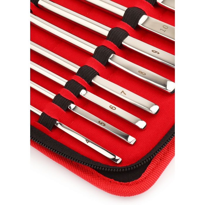 Ontdek de Mr. Steel Single-End Urethrale Dilatoren, jouw nieuwe beste vriend voor een soepele en gecontroleerde stretchervaring. Deze dilatoren zijn vervaardigd uit hoogwaardig roestvrij staal, wat niet alleen zorgt voor een lange levensduur, maar ook een luxe gevoel geeft tijdens gebruik. Met hun rechte, enkelzijdige ontwerp zijn ze perfect voor geleidelijke en precieze dilatatie, zodat je op een veilige en comfortabele manier de diepte van urethrale exploratie kunt verkennen. Elke set bevat verschillende maten, waardoor je op je eigen tempo kunt opbouwen en de ervaring kunt afstemmen op jouw persoonlijke behoeften.