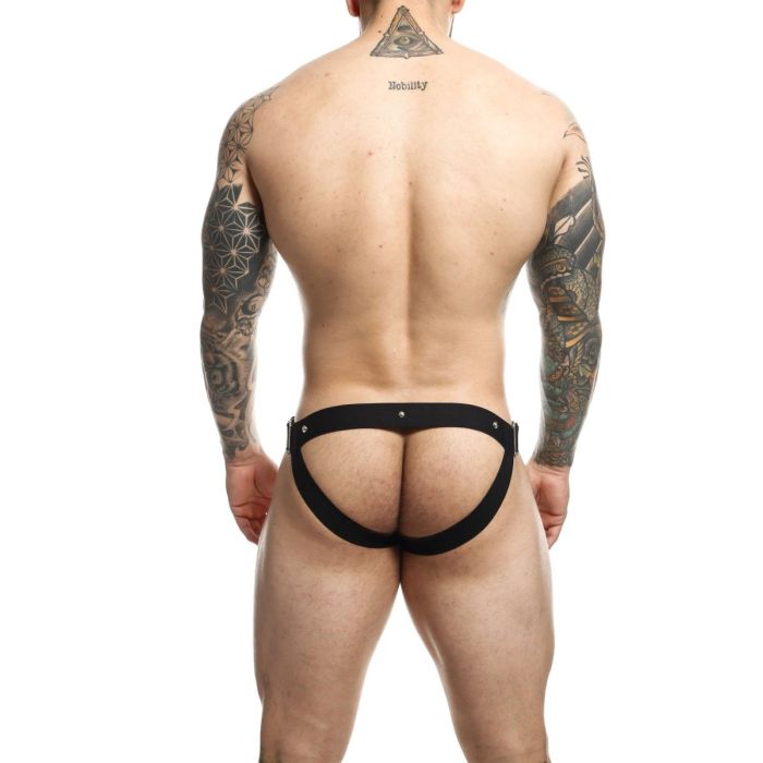 Dé perfecte aanvulling voor intieme momenten samen met je lover. Deze geweldige, en tikkeltje ondeugende, Cockring Jockstrap van het merk MaleBasics is alles wat je nog nodig zult hebbben. De jock heeft brede bandjes aan de voorkant die op de heupen zitten en zorgen voor een comfortabele en ondersteunende pasvorm. Daarnaast zorgen de metalen studs voor een extra dosis interesse, terwijl de blote achterkant zorgt voor nóg meer opwinding. Ook zou je deze jock zelfs als ondergoed kunnen dragen voor een 'naadloze look' onder strakke kleding.