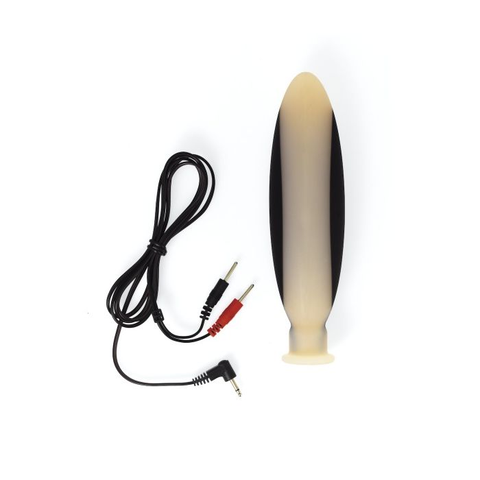 Deze zachte bi-polar buttplug is gemaakt van siliconen. Twee geleidende strips langs de zijkanten geleiden de stroom.