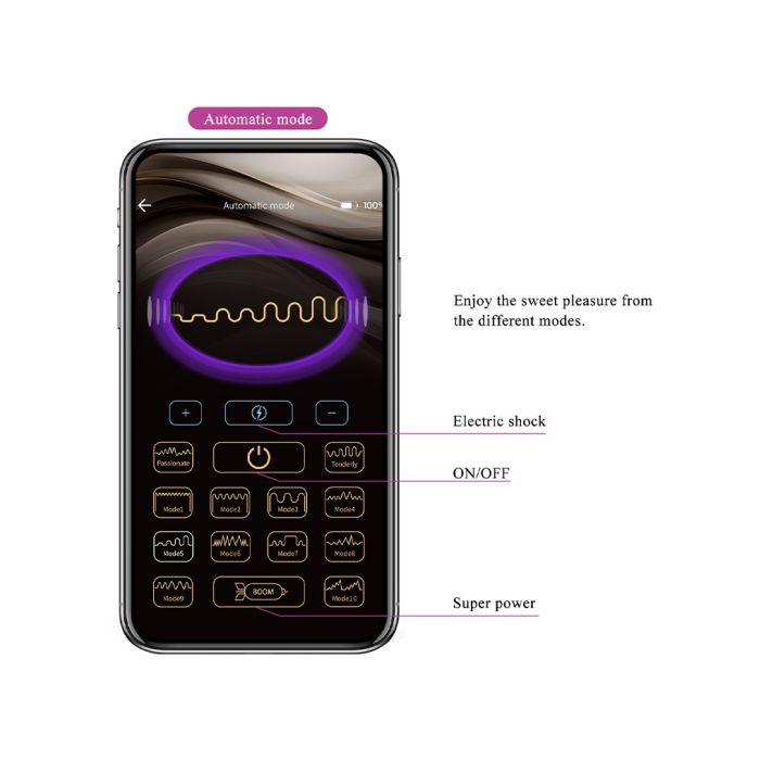 De échte kick? De elektrische schokfunctie gecombineerd met app-bediening. Via de gratis app stuur je de 12 vibratiestanden en 4 shockstanden volledig naar wens aan – alleen of samen met je partner, waar die ook is. Perfect voor spannende spelmomenten op afstand of voor een directe boost tijdens je solotijd.