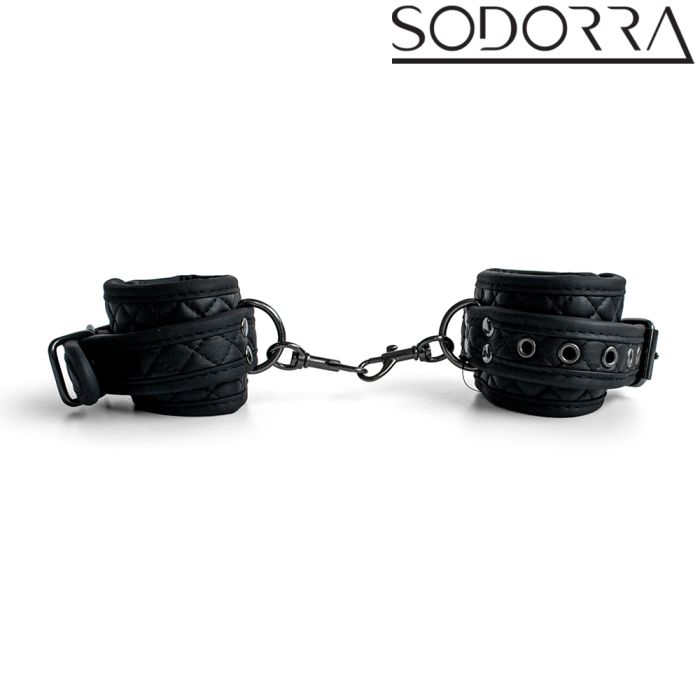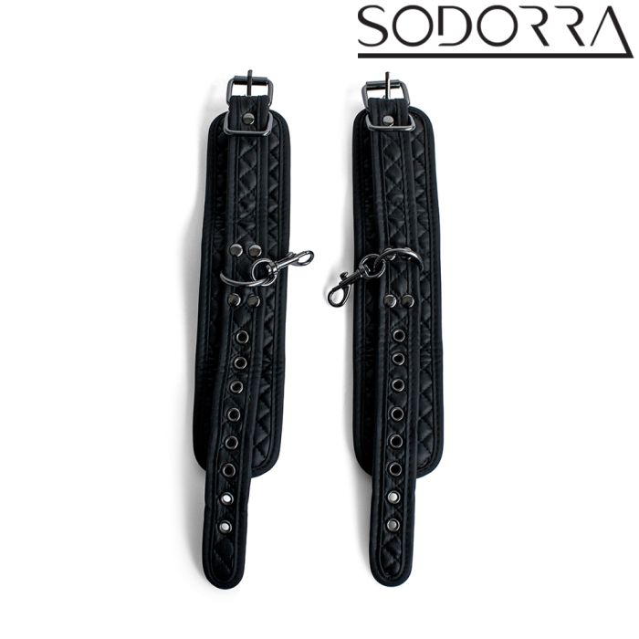 De SODORRA Vegan + Neo Diamond bondage-boeien zijn vervaardigd uit hoogwaardig, zacht veganistisch leer en duurzaam neopreen, wat zorgt voor een stijlvol en comfortabel gevoel tijdens al je avonturen. Het elegante, volledig zwarte ontwerp met een verfijnde diamantvormige vulling voegt een vleugje klasse toe aan je slaapkamer, terwijl de stevige karabijnhaken je de vrijheid geven om je fantasieën te verkennen. Of je nu je polsen of enkels wilt vastbinden, deze boeien creëren een spannende dynamiek die elke aanraking intensifieert en je zintuigen prikkelt. Laat je verlangens de vrije loop en beleef samen met je partner een onvergetelijke, sensuele reis. Wees onderdanig, wees dapper – de SODORRA Vegan + Neo Diamond Restraints wachten op je om je fantasieën werkelijkheid te laten worden!