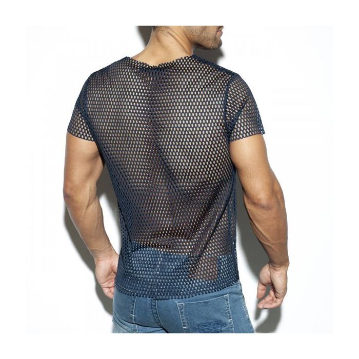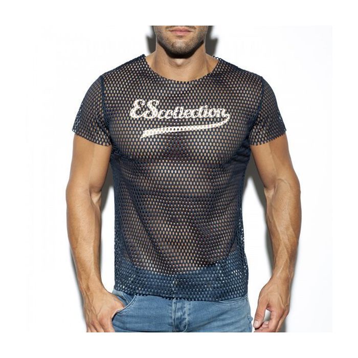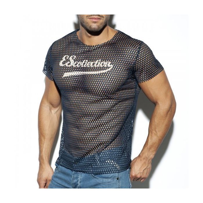 Het ES Collection Open Mesh T-Shirt - Blauw is heerlijk op warme dagen. Het shirt is gemaakt van sportief mesh met een grove mazen structuur. De randen van het T-shirt zijn ruig gelaten voor een nonchalante uitstraling. Op de borst staat in vintage stijl het ES logo afgebeeld.