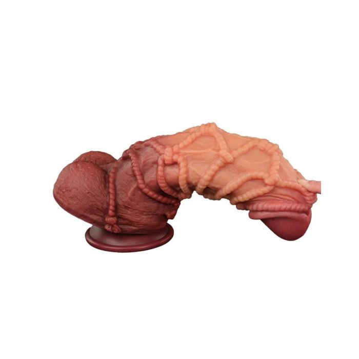 Extreme Dildo Met Touw Motief 26.5 cm - Huidskleur Bruin