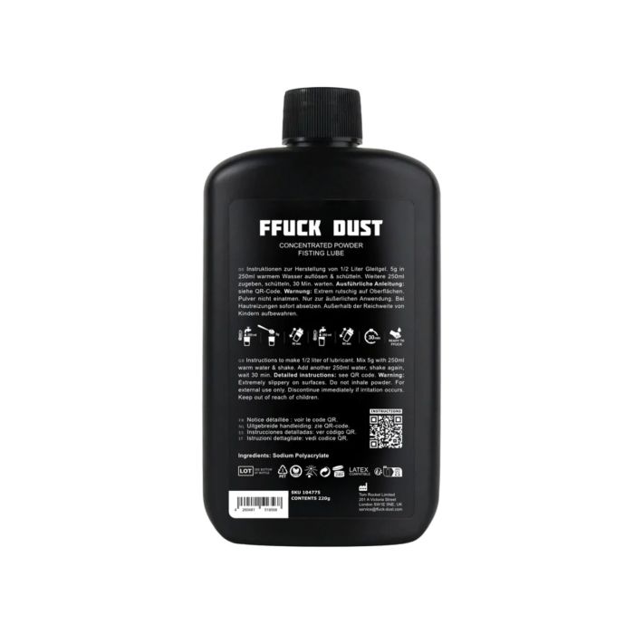 Wat FFuck Dust echt uniek maakt, is de aanpasbaarheid. Meng het poeder eenvoudig met water om de lube dikker of dunner te maken, perfect voor elke situatie die vraagt om serieuze slip. Met slechts één fles kun je tot wel 22 liter gebruiksklare lubricant maken, wat het een ultra-efficiënte keuze maakt voor zowel intense, high-volume sessies als voor een zachtere glijervaring.
