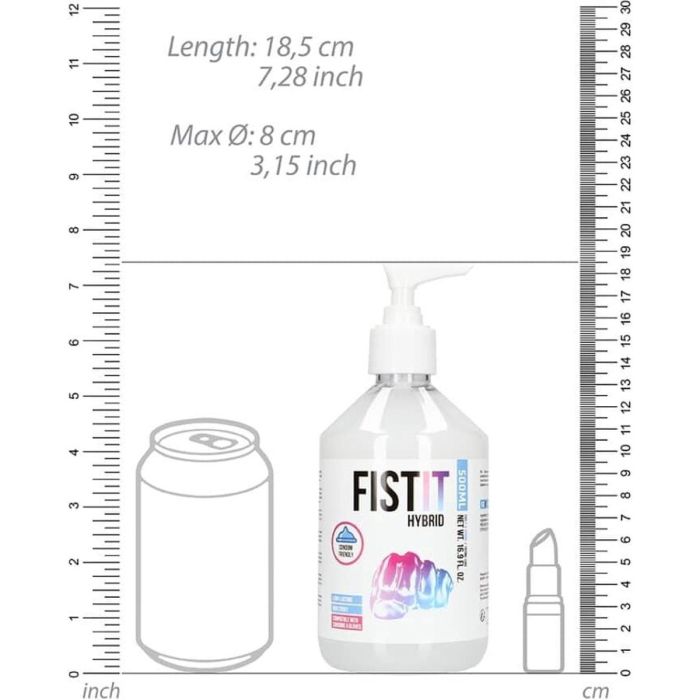 Dit speciale fisting glijmiddel van Fist It is een must-have voor iedereen die op zoek is naar een hybride glijmiddel. Het glijmiddel heeft zowel de kenmerken van siliconen als waterbasis. Dit houdt in dat je verzekerd bent van het glijvermogen van siliconen en het na gebruik gemakkelijk kunt afspoelen zoals een glijmiddel op waterbasis. Verpakt in een fles met een inhoud van 500 ml met handig doseerpompje.