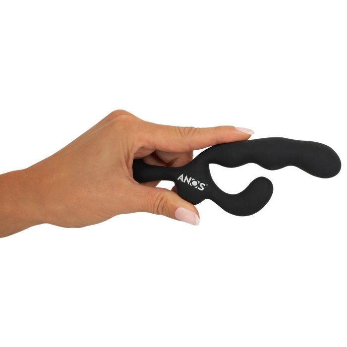 De driedubbel anaal plezier prostaatstimulator van ANOS is anatomisch perfect gevormd en heeft drie armen met elk een krachtige motor die zeven vibratiestanden biedt. De centrale schacht is golvend en heeft een schuine kop die naar boven toe breder wordt, waardoor de P-spot feilloos wordt bereikt. Naast de prostaat en het anale kanaal worden ook de anusring en het perineum gestimuleerd door de vibrerende anaalstopper.