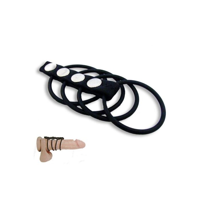 Deze cockring bestaat uit vier flexibele rubberen ringen die je rondom de schacht van de penis of ballen kunt plaatsen. Het strakke gevoel dat deze ringen bieden, zorgt niet alleen voor een krachtige erectie, maar ook voor een intensere stimulatie die je zintuigen prikkelt. Dankzij het comfortabele ontwerp passen de ringen zich moeiteloos aan jouw lichaam aan, zodat je je volledig kunt overgeven aan het plezier, of je nu solo speelt of samen met een partner.
