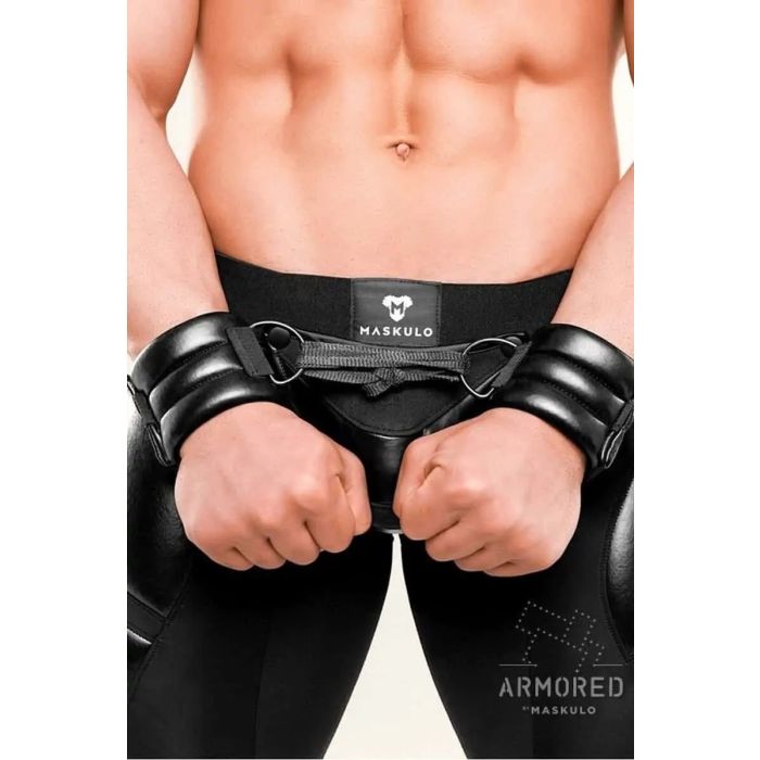 Draag de Gepantserde D-Ring Polsbanden - Zwart in lederlook als sieraad of verrijk je BDSM spel. Deze D-ring maakt de pikante look helemaal compleet en zorgt voor een individuele herkenbare stijl. Het zal de eigenaar zeker benadrukken. Ook zorgt deze polsband ervoor dat je arm er massiever en strakker uit zal zien. Bij aanschaf van twee D-Ring Polsbanden kun je de D-ringen als handboeien gebruiken. Het oppervlak van de polsband is verdeeld in drie gelijke delen door twee parallelle horizontale naden.