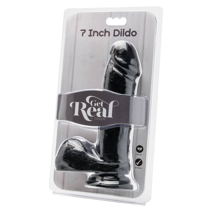 De Get Real Realistische Dildo met Ballen ziet er echt uit met zijn geaderde schacht en een stel dikke ballen. De afgeronde eikel zal ervoor zorgen dat de dildo makkelijk en pijnloos je anus in zal glijden en de stimulerende aders die over de schacht heen lopen zal je laten genieten bij elke stoot. De krachtige zuignap plak jij op elk vlak ondergrond en zal daar stevig blijven zitten zodat jij lekker hands free op deze pik kan gaan zitten. Maak altijd de dildo voor en na gebruik goed schoon met water en een milde zeep of een toycleaner.