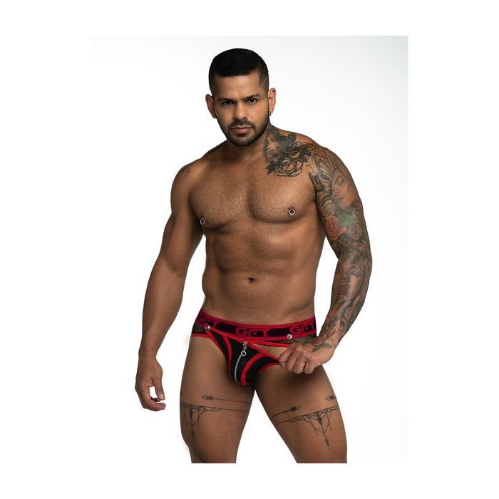 De GIGO Brief Jock Zipper - Red is een lage herenslip die lekker strak zit en geeft veel van jouw prijs. Wat zul jij er sexy uitzien in deze slip.