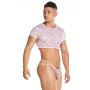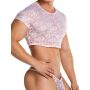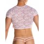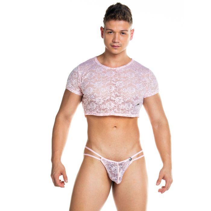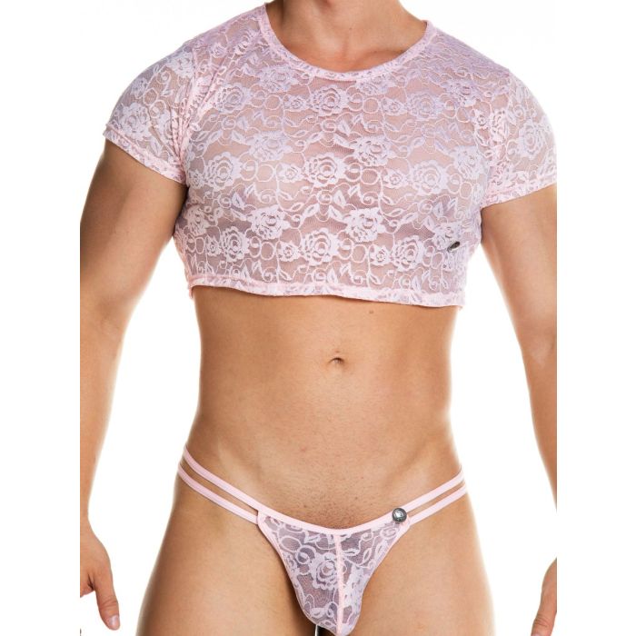 Wanneer je de Gigo Crop Top Kant - Roze draagt zul jij zeker weten opvallen. Een crop top wordt vaak door vrouwen gedragen, maar kan natuurlijk net zo goed (en misschien wel nog wel beter) door mannen gedragen worden zoals je ziet op de foto. Met het dragen van deze crop top komen jouw prachtige buikspieren en mannelijke lijnen optimaal tot hun recht voor een verleidelijke look. Het sierlijke kant is licht doorschijnend en zeer elastisch waardoor de top een prettig draagcomfort en uitdagende look heeft.