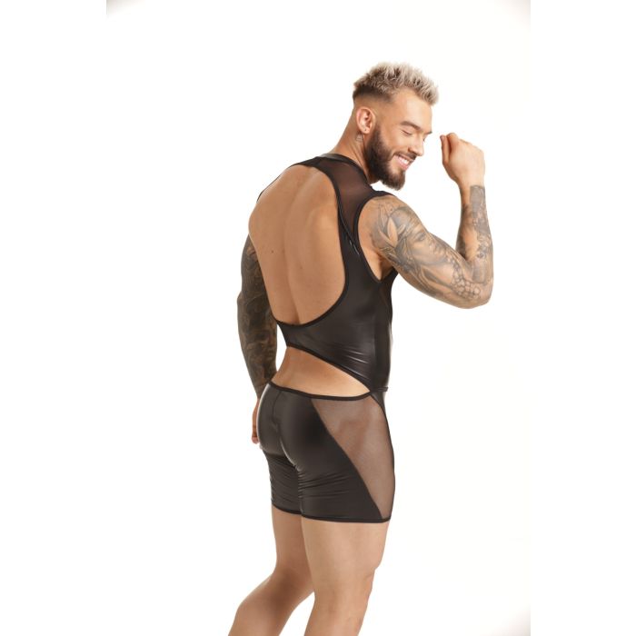 De GIGO Fetish Jumpsuit - Zwart is een opvallend en sensueel kledingstuk dat perfect is voor liefhebbers van bondage en spannende avonturen. Met zijn verfijnde details en ongetemde mogelijkheden zal deze body je zeker in de stemming brengen voor een avond vol passie en verlangen. De body is gemaakt van hoogwaardig materiaal en heeft mesh-inzetstukken op het korte been en in de taille, waardoor het een sexy en uitdagende uitstraling heeft. Deze inzetstukken bieden ook spannende inzichten, waardoor je partner niet kan wachten om je te verkennen. Een handige ritssluiting in het midden zorgt ervoor dat je de jumpsuit gemakkelijk aan en uit kunt trekken, zodat je snel kunt beginnen met het vervullen van je diepste verlangens. Of je nu een beginner bent in de wereld van bondage of een ervaren liefhebber, de GIGO Fetish Jumpsuit - Zwart is een must-have item voor je collectie. Maak je avond nóg heter door deze verleidelijke body te dragen en laat al je fantasieën werkelijkheid worden.