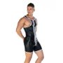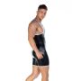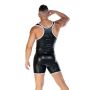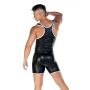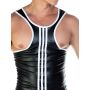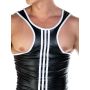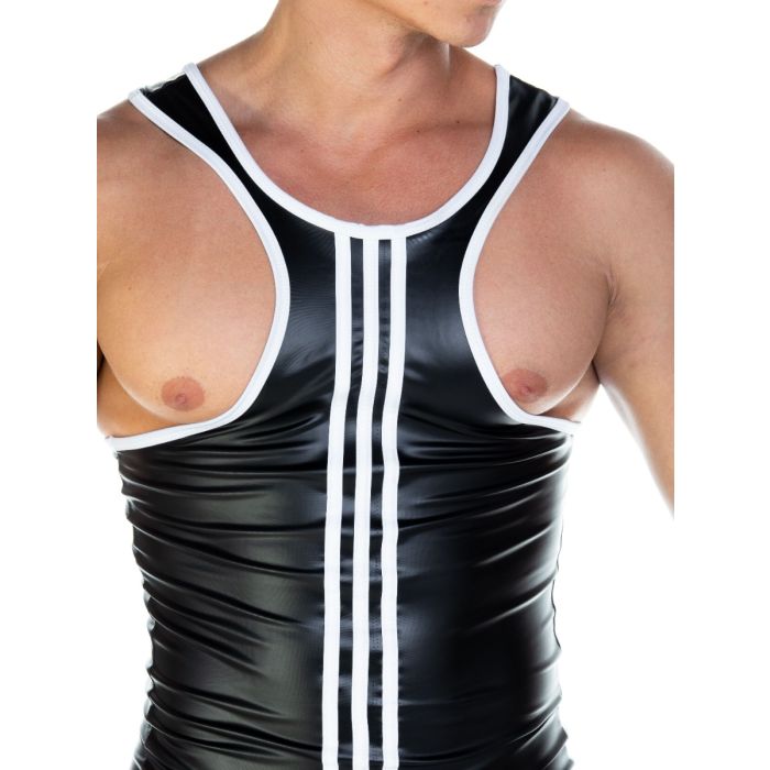 Wanneer je deze singlet draagt zal je partner ontzettend naar je verlangen en zullen jullie zeker weten een spannende avond beleven samen. De singlet is gemaakt van een gladde en glanzende wetlook stof waardoor het een kinky uitstraling krijgt. De pasvorm van de singlet is nauwsluitend en daardoor zijn al je mannelijke vormen goed zichtbaar. Ook heeft de singlet contrasterende witte strepen voor een uitdagende look.