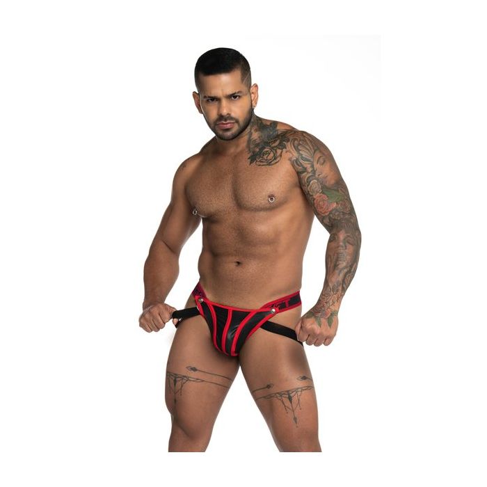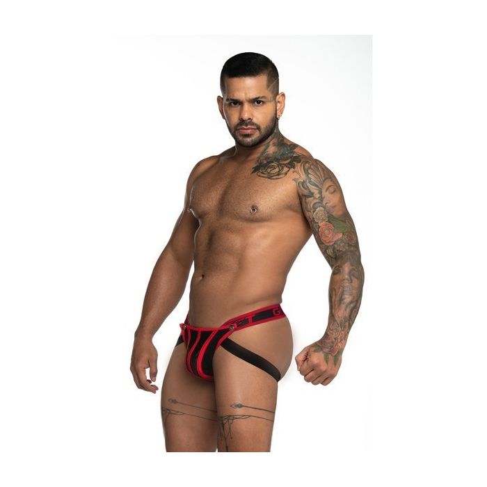 De unieke vormgeving van deze jockstrap biedt optimale ondersteuning en comfort, terwijl de elastische banden aan de zijkanten perfect over je dijen lopen en onder je billen door voor een subtiel liftend effect zorgen. De open achterkant voegt niet alleen gemak toe, maar geeft ook een extra vleugje ondeugendheid aan je look.