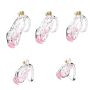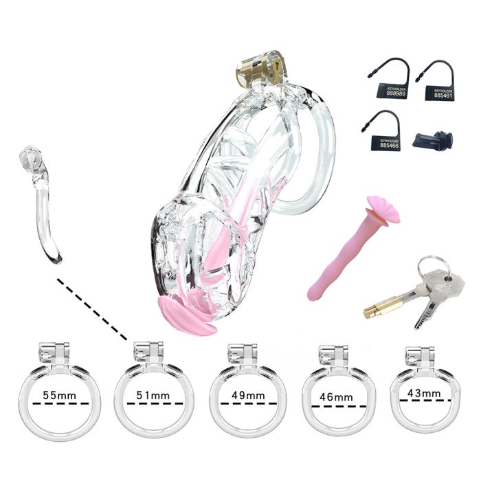 2. Een van de meest opvallende kenmerken van de Guardian peniskooi is de roze siliconenkatheter, die niet alleen visueel aantrekkelijk is, maar ook praktisch. Deze flexibele plug heeft een unieke opening die het mogelijk maakt om te urineren zonder de kooi te verwijderen, wat het gebruiksgemak aanzienlijk vergroot. Daarnaast wordt de peniskooi geleverd met een traditioneel metalen slot en twee sleutels, evenals een speciale ABS-kunststof adapterpen voor Stealth-modus. Deze adapterpen maakt het mogelijk om de kooi te vergrendelen met een van de vijf kunststof sloten, elk met een unieke sabotagebestendige identificatiecode, wat het ideaal maakt voor gebruik tijdens reizen of in situaties met metaaldetectors. Met de mogelijkheid om reservesets van tien wegwerpsloten apart aan te schaffen, zijn gebruikers altijd voorbereid op elke situatie.