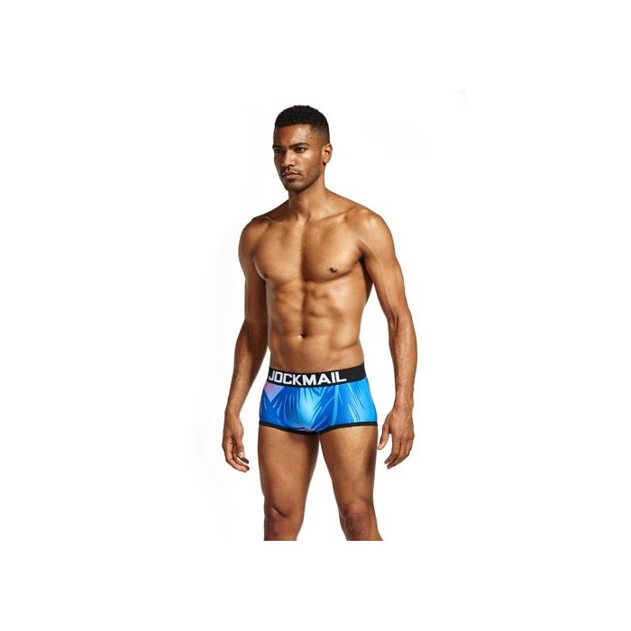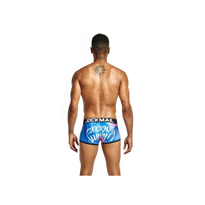 In de JM424 Tropical Boxer - Blauw van het merk Jockmail ben jij een heerlijke tropische verrassing! Deze boxershort is gemaakt van hoge kwaliteit gekamd katoen met stretch kwaliteit voor een comfortabele en perfecte pasvorm. Het katoen is super zacht, heerlijk luchtig en zweet bestendig. De strakke boxershort zit laag om de heupen en heeft een zomerse, kleurrijke print met de tekst "Jockmail Summer" op de achterkant in sierlijke letters.