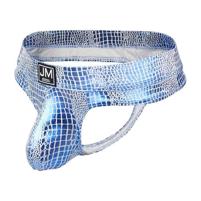 De Spectrum String - Blauw van Jockmail moet je gewoon hebben. Deze string is lekker fout door de krokodillen leer print in metallic blauwe kleur. De buidel is anatomisch correct gevormd voor een vrij en toch ondersteunend gevoel. De tailleband met elastaan is heerlijk stevig en afgewerkt met het Jockmail logo voorop.