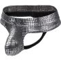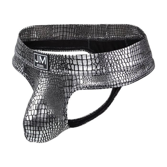 Deze geweldige party string mag niet aan jouw ondergoed collectie! De Jockmail Spectrum String - Zilver heeft een krokodillen leren print in zilverkleurige uitvoering en voelt lederachtig aan. De buidel is perfect gevormd voor een vrij en toch ondersteund gevoel. De tailleband met elastaan is heerlijk stevig en afgewerkt met het Jockmail logo voorop.