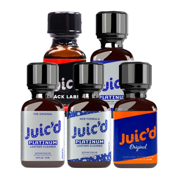 Ontdek de wereld van Juic'd poppers met ons exclusieve try-out pakket, dat je de kans biedt om vijf verschillende aroma's te ervaren. Juic'd is een opkomend label dat zich richt op het leveren van hoogwaardige poppers, perfect voor diegenen die op zoek zijn naar een intense en plezierige roes.