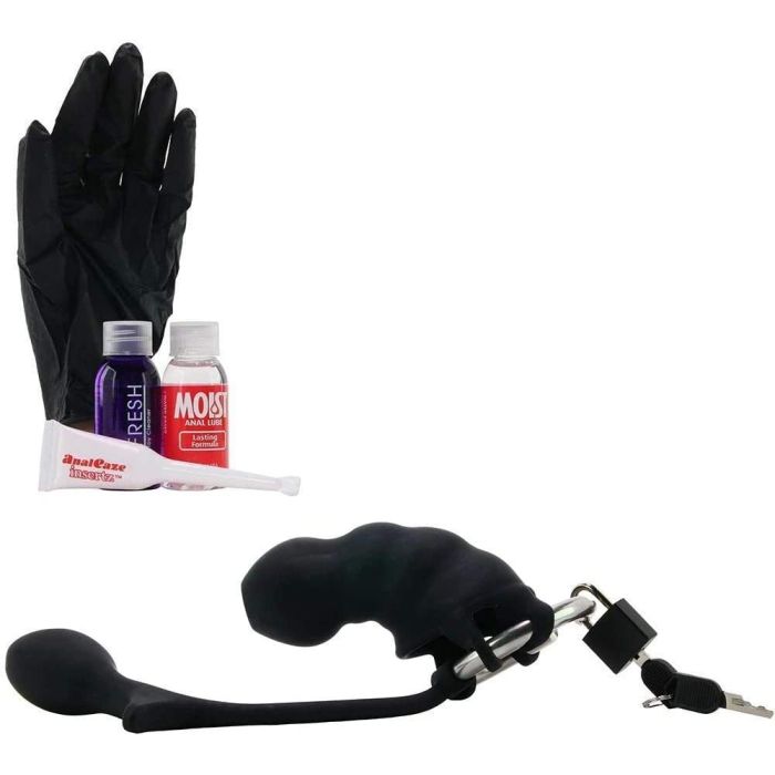 Geef je meester volledige controle over je erectie en orgasme met de Kuisheidsgordel Ass-gasm Cock Blocker. De kuisheidsgordel is tevens voorzien van een anaal plug zodat je kontje tenminste wel lekker verwend wordt. De stalen cockring zorgt ervoor dat alles lekker strak zit. De set wordt geleverd inclusief slotje en sleutels plus een prep kit met een plastic handschoen, een anal creme, een anal glijmiddel en een toycleaner. Zo kan jij bij ontvangst van je kuisheidsgordel ass-gasm cock blocker direct aan de slag.