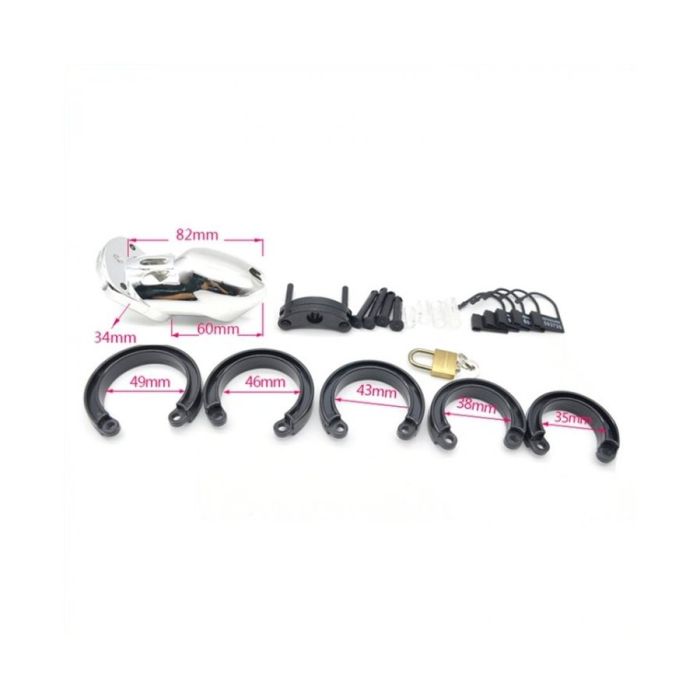 De Kuisheidskooi Herald is ideaal om een erectie te voorkomen. De kooi wordt geleverd met extra ringen van 35 mm tot 49 mm zodat jij er zeker van bent dat het altijd past. Meegeleverd is een slotje met extra sleuteltje zodat jij je partner echt een onderdanig gevoel geeft.