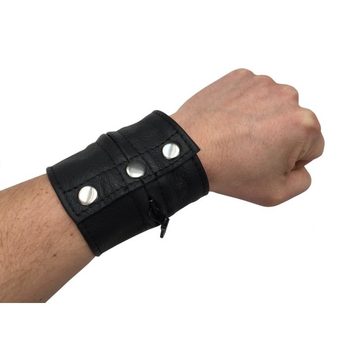 Perfect voor dat ene geile feestje waarbij jouw outfit niks anders is dan een leren harnas en een leren string. Waar moet jij dan nu je geld en pasjes laten? Juist! In de binnenkant van je sexy leren armband met drukknopen. Want deze is namelijk voorzien van een geintegreerde portefeuille. Hoe handig is dat?! De armband is gemaakt van soepel leer welke fijn om je pols heen zal zitten zonde te striemen. Hij sluit middels drukknopen en is door het mooie materiaal zeer duurzaam.
